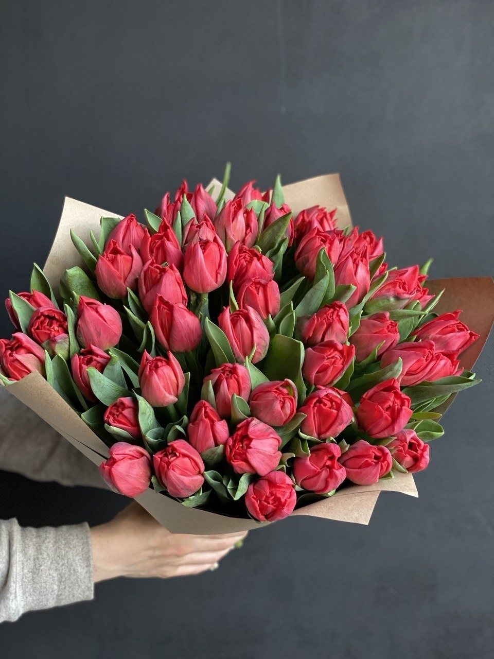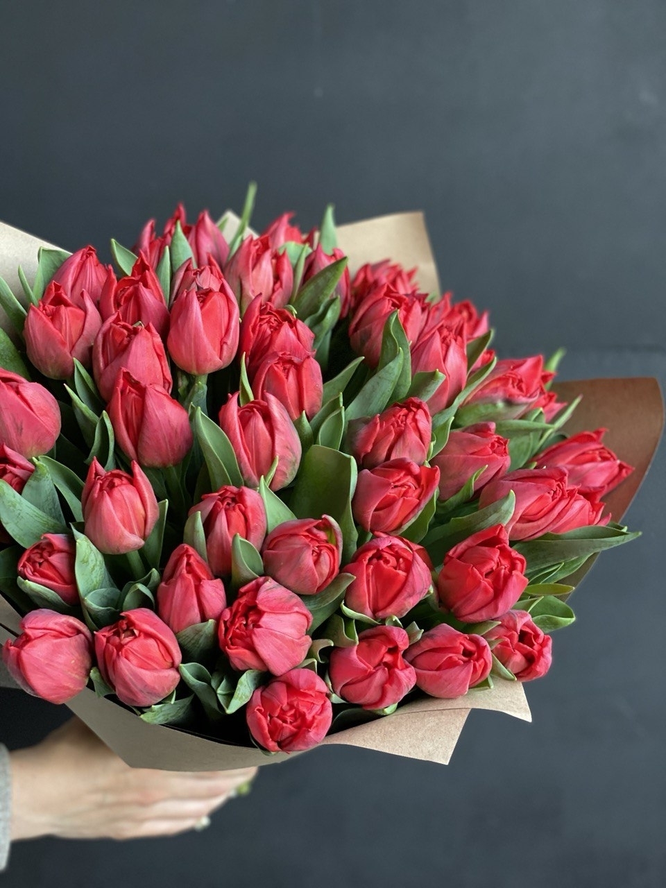 Тюльпаны красные пионовидные